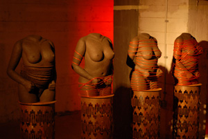 In den Klängen der archaisch wirkenden Planetentöne stößt man im vorderen Teil des Bunkers bald auf eine sehr ambivalente Barriere aus abwehrbereiten Balusta-Säulen – das sind weibliche Torsi mit geballten Fäusten – die wie Wächter durch kollektive Stärke Eindringlinge vom dahinterliegenden Innersten des Bunkers fernhalten könnten?